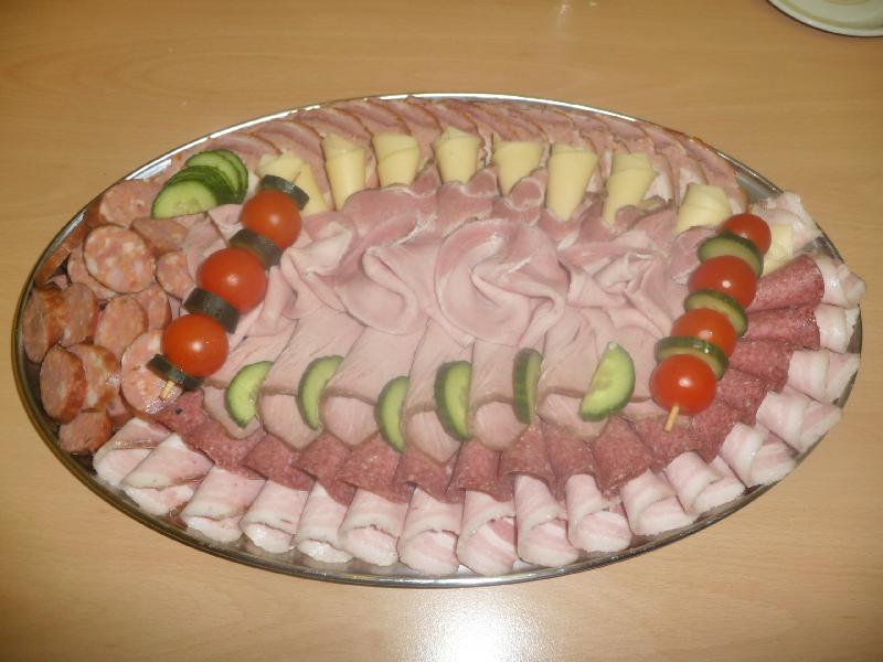 Hlavní jídlo: a) smažený vepřový řízek, bramborová kaše, okurek